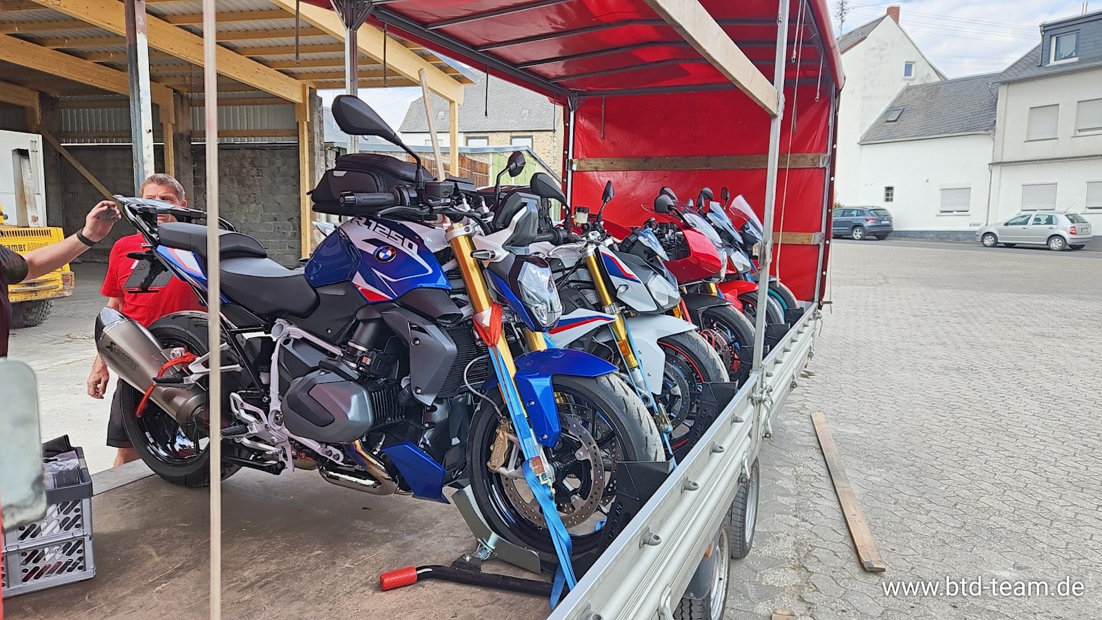 Spezielle Motorrad-Sicherungsgurte für eine optimale und sichere Verzurrung sind natürlich selbstverständlich. Damit Ihr Bike genauso bei Ihnen ankommt, wir es eingeladen wurde.